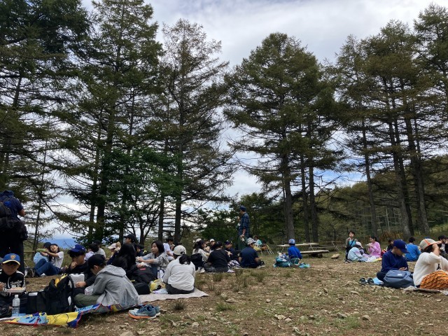 ハイキングの途中で昼食をとります。大自然の中で、仲間とともに食べるお弁当の味は格別です。保護者の皆様には、朝早くからお弁当を準備をしていただき、ありがとうございました!この後、入笠山の頂上を目指してハイキングをスタートします!