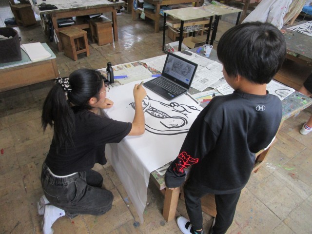 展覧会に向けて、力を合わせて作品作りが進んでいます。展覧会まで約一か月。完成がとても楽しみです。