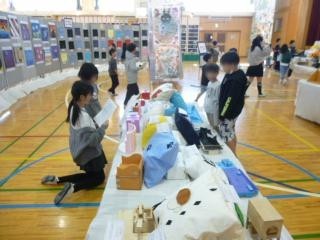 今日から展覧会が始まりました。今日は児童鑑賞日です。5年生と3年生、4年生と2年生、6年生と1年生がペアになって一緒に鑑賞しました。明日の保護者の方への「子どもガイド」のリハーサルを兼ねて、上の学年の子が低学年の子に自分たちの作品について説明をしました。上級生が下級生と一緒に会場をまわりながら自分の思いを丁寧に伝えていました。