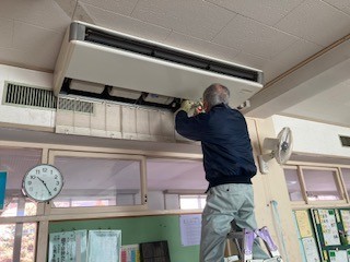 冬休み中に、用務員さんが全クラスの教室のエアコンフィルターをきれいにしてくれました。気持ちよく3学期のスタートが切れそうです。