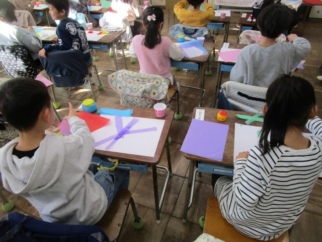 貼りながら表したいものをそれぞれ考え、華やかな作品に仕上げました。