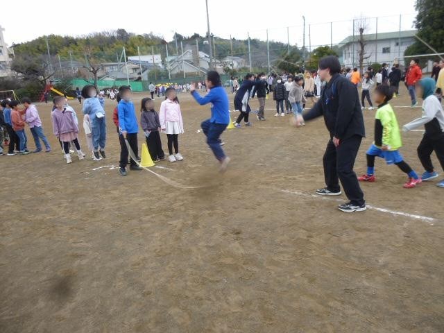 今朝は長縄集会を行いました。クラス全員で長縄を決まった時間に何回跳べるか、めあてを決めて挑戦しました。体育委員さんの指示のもと、全学級が校庭で一斉に、回数を数えながら、長縄を跳びました。最後、「ヤッター」と歓声があがっているクラスがたくさんありました。