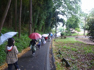 雨の中でしたが、3クラスそれぞれに3つのコースに分かれてまちたんけんをしてきました。屋上からでは見られない町の様子を、実際に歩いてみて、たくさん見ることができました。予想していた風景と違ったり、すごいと驚くようなものを見つけたり、自然を肌身で感じたり、それぞれのコースの様子に気付くことができたようです。次はどんな町の様子が見えるのか、楽しみですね。