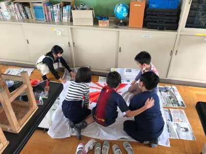 休み時間を使って、色を付けています。17日の週からは、ソーラン節で使っていきます。