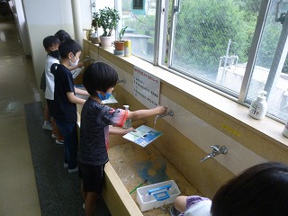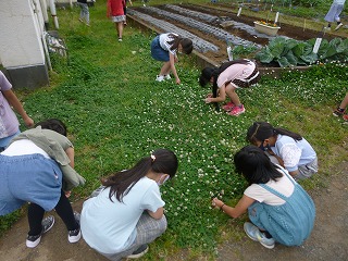 図工では、学校の畑周りに向かい、自分のお気に入りの草探し!