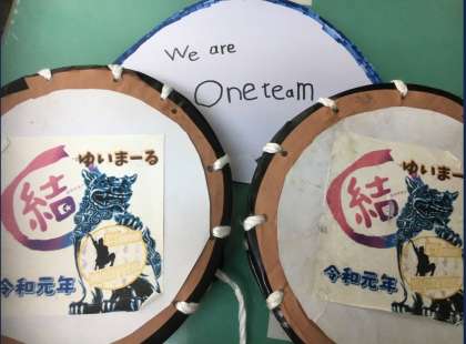 また、運動会で使用する道具もそろってきました。2年生の「はねこ」で使用した紙で作った扇子と4年生の「エイサー」で使用した太鼓です。中には、当時の道具を持っていて使用する人もいます。ここまでよく保管していたと驚くばかりです。