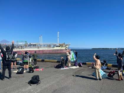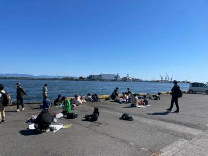 クラスごとに冷凍庫見学をしている間に海岸で昼食タイムです。