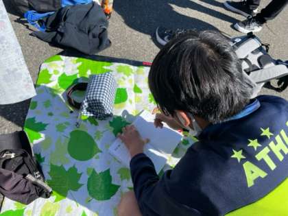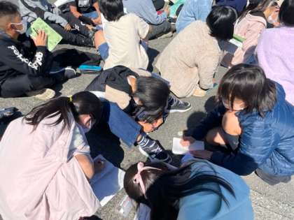 昼食後車窓から見えたものや冷凍庫見学で学習したことをメモに残しています。