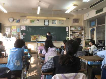 図書ボランティアの方が、朝の読み聞かせをしてくださいました。大型絵本で、後ろからも絵が見やすく、みんな話に聞き入っていました。