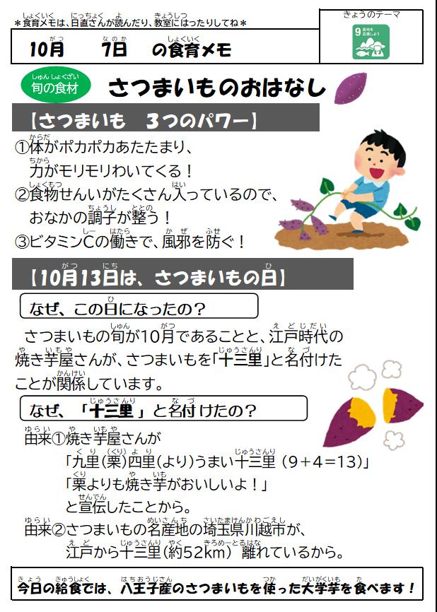 今日は秋が旬のさつまいもを使った大学芋です。素揚げした八王子産のさつまいもに甘じょっぱいタレと黒ごまを絡ませました。
