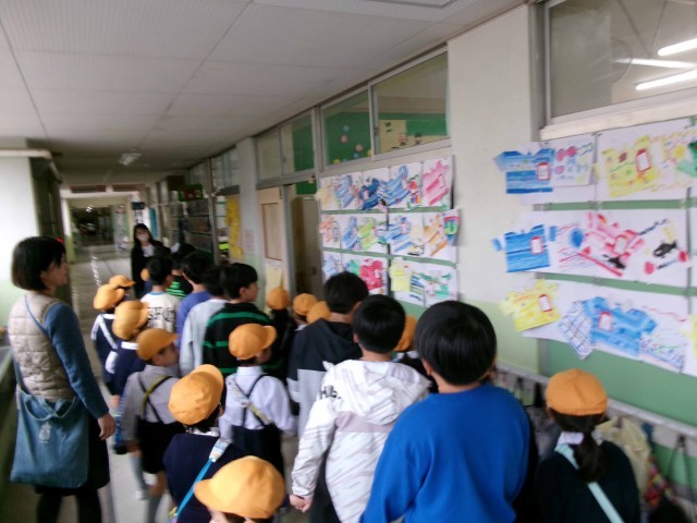 リハーサルの鑑賞後は、5年生児童が校舎内を案内しました。