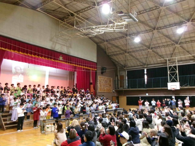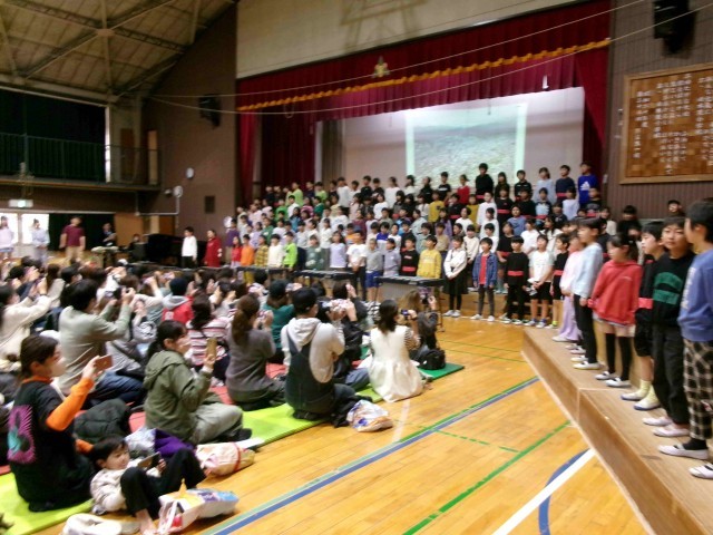 地域の素晴らしさを歌や合奏、劇で披露しました。