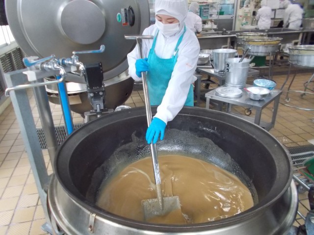 写真3枚目:カレーのルーを作っているところ。じっくり炒めて作ります。