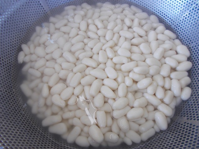 写真3枚目:絹のおすいものに入れる白玉。かいこのまゆの形にしています。