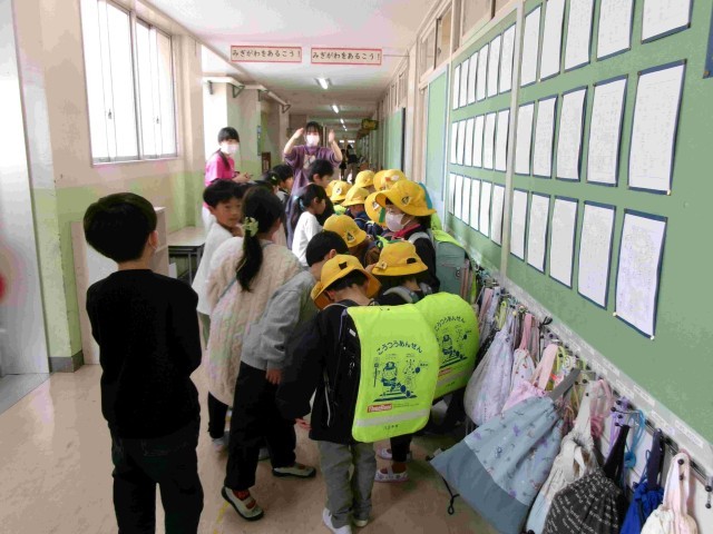 1年生から学校生活での楽しいことを発表したりランドセルを背負わせたりしました。