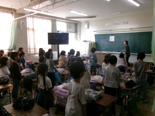 1年生は先生の話をよく聞いて、学校での学習が始まっています。