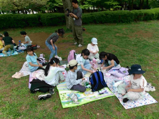 たくさん遊んだ後、楽しみにしていたお弁当に時間です。