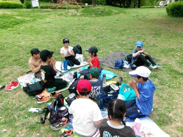 友達同士誘い合いながらグーループを作り、仲良くお昼ご飯を食べました。