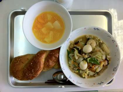 きな粉揚げパン・八宝菜・オレンジポンチ・牛乳