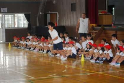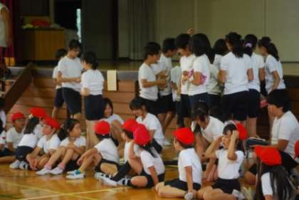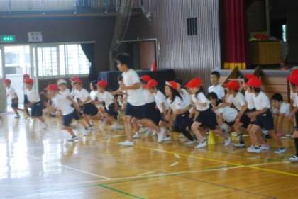 5日(月)5時間目に体育館に行ってみると、1年2組がシャトルランの計測をするところでした。初めてやる1年生のために6年生のお兄さんがお手本を見せてくれました。そして、1年生の計測開始。「ドーレーミーファーソーラーシードー」で反対側まで行って、「ドーシーラーソーファーミーレードー」で戻ってきます。さあ、何回続いたかな?一人一人の記録を6年2組のお兄さん、お姉さんがつけて、袋に入れてくれました。