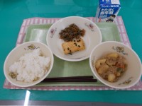 豚の角煮丼・かぶのみそ汁・油揚げと小松菜の煮びたし・牛乳