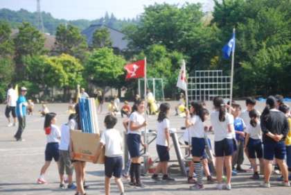 17日(金)6時間目は運動会の係活動です。応援団やプラカード、ゴール等、各係に分かれて活動です。応援団も初めて外に出て思いっきり声を出しました。