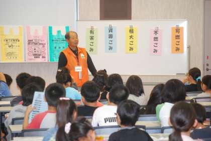 9日(水)4年生が唐木田にある多摩清掃工場へ見学に行きました。はじめにホールで、ゴミについての学習です。ゴミの種類について聞かれた時は、たくさんの手が挙がりました。