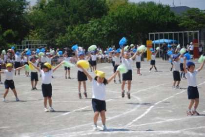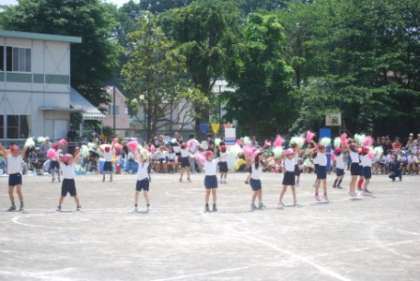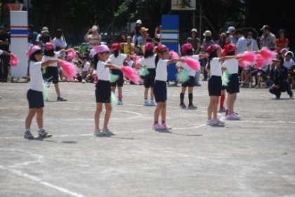 プログラム7番は2年生の「ラン!由木っ子ラン!!」です。両手にポンポン、頭にバンダナを巻いて、リズミカルに踊りました。