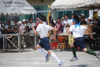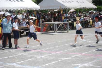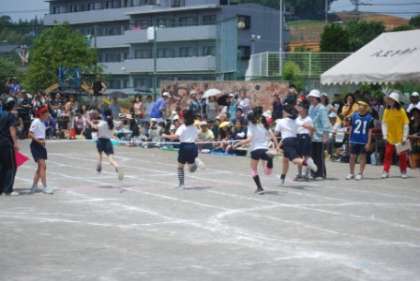 プログラム11番は4年生の80m走です。今年はコーナーにも慣れてゴールへ一直線。スピードも落ちません。