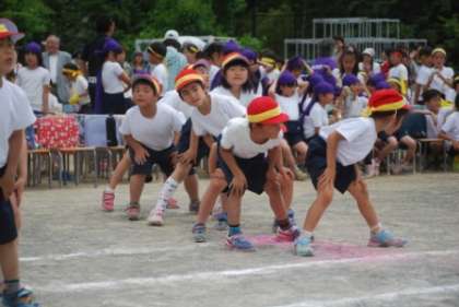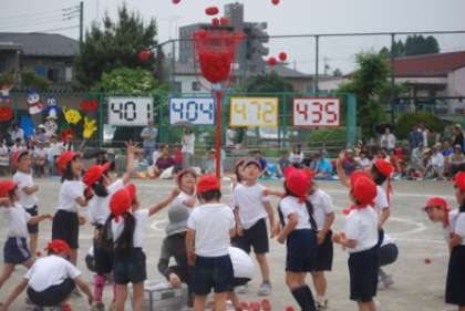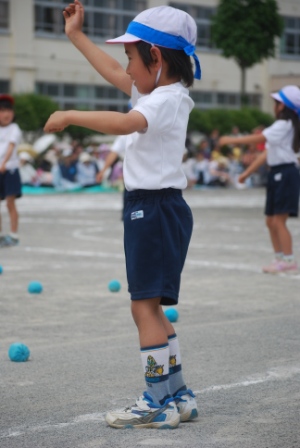 プログラム25番は1年生の玉入れです。やっぱり、ここは、エグザイルでカッコよく入場。その後は、「チェッ、チェッコリー」のリズムに合わせてかわいく踊ってから玉入れです。踊りも玉入れも全力でできました。