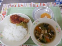 *今日のこんだて**かつめし  青菜と豆腐のすまし汁  くだもの 牛乳*主な食材...