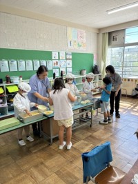1年保護者対象の給食試食会が行われました。4時間目が体育だったにもかかわらず、着...