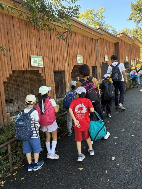 雨の多い今日この頃でしたが、遠足当日の今日は気持ちのよい秋晴れでした。バス停までの長い道のりを友だちや先生と楽しくおしゃべりしながら歩き、モノレールにも乗りました。多摩動物公園に着くと、入場まで待たされるほどたくさんの学校や幼稚園が来ていてびっくりしました。