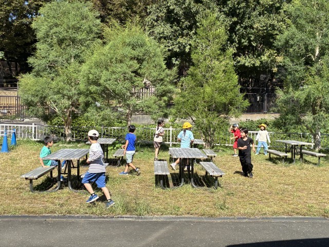 朝からたくさん歩いた1,2年生、中休みの時間の頃には「おなかすいた~」という声も・・・。予定の見学場所をまわり、いつもより少し早い時間のランチタイムです。つくってもらったお弁当の中身を説明しながら美味しく完食、おやつをほおばって元気チャージ完了!目の前の芝生で1,2年一緒におにごっこをしました。帰りは園内シャトルバスに乗ってアジア園を車窓見学しながら正門前に到着、再びモノレールとバスに乗りました。バスを降りてからの道のりが長いにもかかわらず、全員一緒に歩き通し、跡地に戻ってくることができました。たくましく成長している1,2年生です!