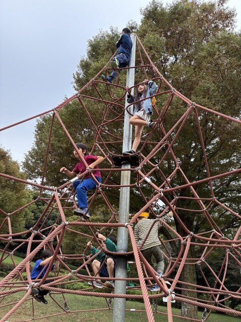 先週に引き続き、1,2年生は今日も校外学習に出かけました。目指すは富士見台公園です。みんなでワイワイいろいろな話をしたり、途中の川でシロサギやカモの親子を発見したりしながら歩きました。公園に着くと、荷物を置いて先生の話を聞いた後、一斉に遊具に向かっていきました。