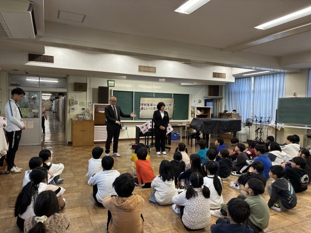 昨日は東京にも木枯らし1号がふいたようです。今朝も冬並みの寒さ、24節気ではもうじき立冬ですね。今日は10月26日に行われた屋台選手権で、3代目ゆぎニッシーズが優勝したことを全校にお知らせしました。また、今日から1ヶ月間、教育実習生が由木西小で学びながら子どもたちと過ごします。生活指導の先生からは、11月の生活目標「目標をもって最後まで取り組もう」についてのお話がありました。