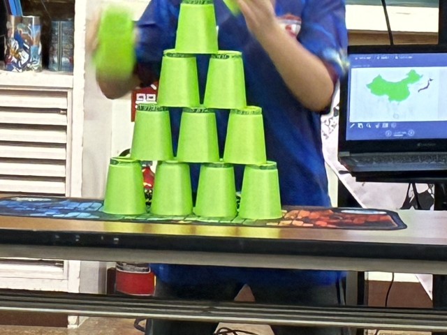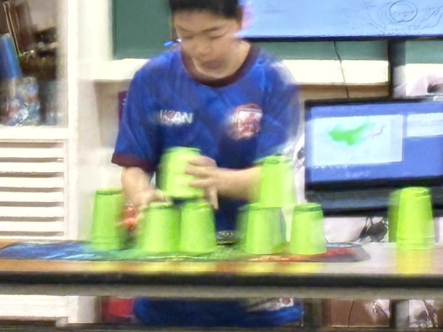 今朝の全校朝会では、先日中国で行われたスポーツスタッキングのアジア大会で、素晴らしい活躍をした由木西小4年生の紹介がありました。特に3-3-3という種目では優勝、その他の種目もメダルを獲得しました。皆の前でもその技を見せてくれました。現地での大会の他に、オンラインでも海外の選手と試合をするそうです。これから先もみんなで応援しています!