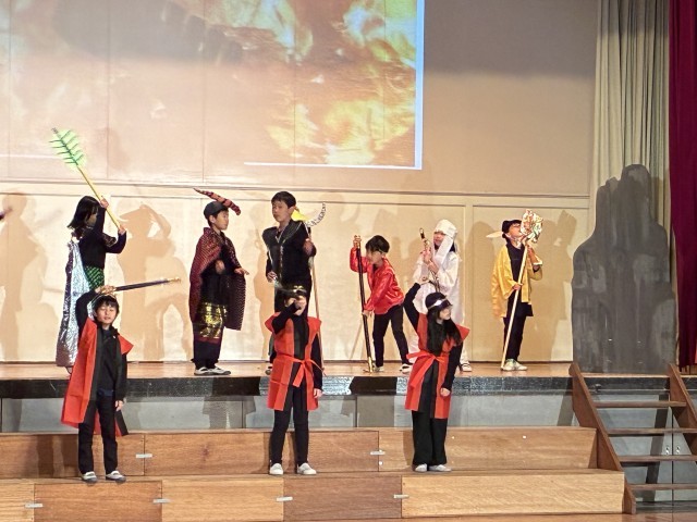 今週末に控えた学芸会、練習にも力が入ります。皆、セリフや動き、歌にも慣れてきました。当日はお天気も良いようです。秋の自然が美しい由木西小にお越しいただき、子どもたちの演技をお楽しみください。皆様の来校をお待ちしています。