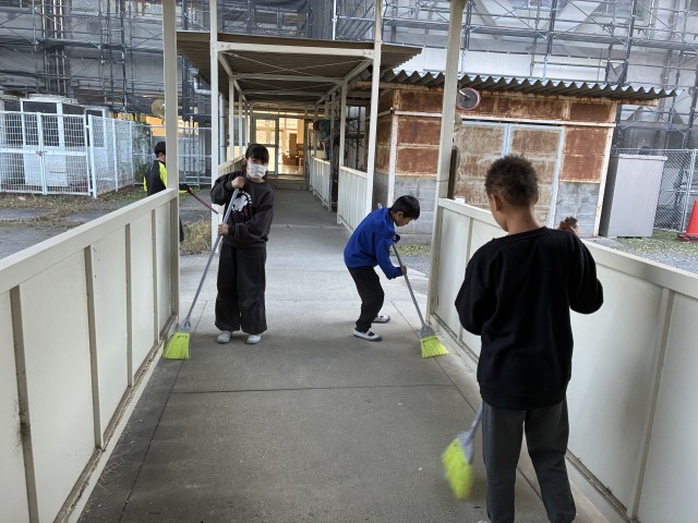 明日からの学芸会に向けて、6校時には4.5.6年生が体育館とその周りを掃除し、会場づくりを行いました。準備万端です!