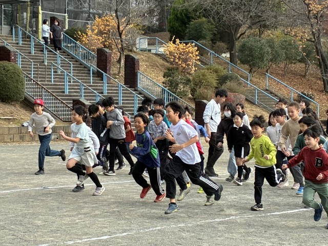 昨日から始まった中休みの持久走では、全校児童や先生も一緒に校庭のトラックを走っています。自分のペースで5分間走りますが、辛くなってきたら歩いても大丈夫。マラソン前の準備体操や、走り終わった後のクールダウンもしっかり行いながら続けていきましょう。