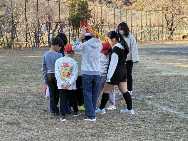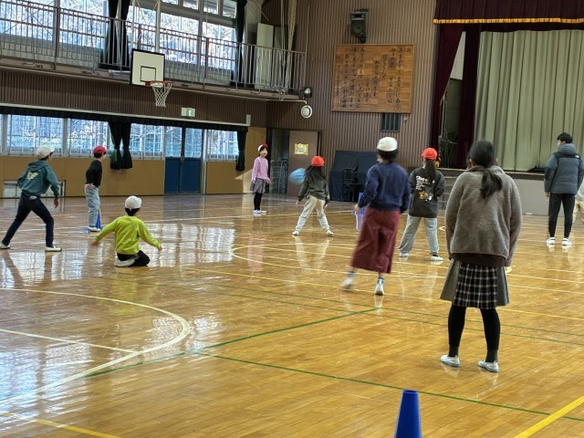 今朝の児童集会はたてわり班遊びでした。寒波到来の朝でしたが、班の友だちと体を動かして、元気な一日のスタートです!