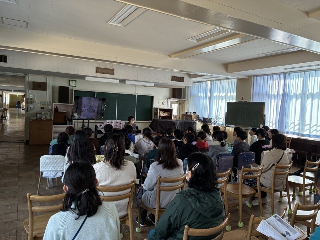 3校時は被爆体験伝承者の方をお招きし、80年前におこった原爆の話をききました。講師は原爆の被害にあった方から話を聞き、伝える活動をおこなっている方です。原爆が落ちた町の様子や家族のことなどを写真や絵を交えてお話いただき、4,5,6年生も最後まで真剣に聞き入っていました。これから大人になる子どもたちには、今日聞いたことを心にとめて戦争のない未来をつくっていってほしいです。