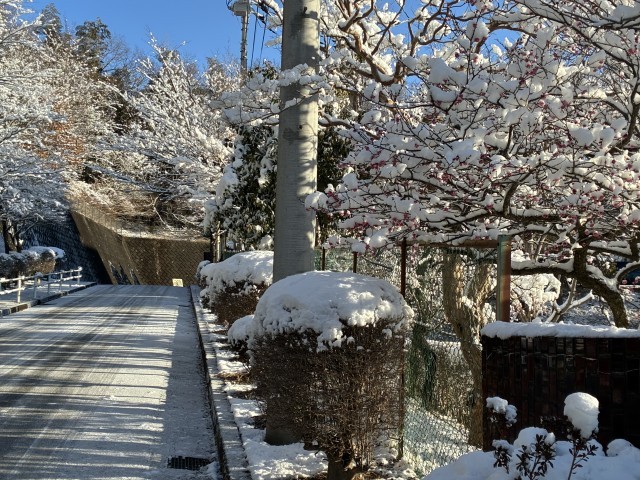 由木西の気温はマイナス7度まで下がった朝ですが、登校時間にはすっかり晴れ渡り、太陽の光を浴びると暖かく感じました。今朝の全校朝会では校長先生から2月7日に迎えた開校記念日の話があり、由木西小学校は152歳になりました。誕生日は普通お祝いをしてもらったり、プレゼントをもらったりする事が多いですが、同時に家族に感謝する日でもあって欲しいことや、この開校記念日を機会に、学校に感謝の気持ちを持つとすれば、それはみんなで学校を仲良く楽しい場所にしていくこと等のお話がありました。雪化粧した学校の木々がとてもきれいでした。一方校庭の雪は日の光でだいぶ解けて来ていました。