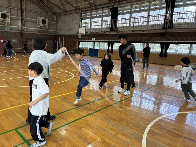 月曜日から始まったなわとび週間が終わりました。この日は3.4年生が鑓水小との小小連携行事に出掛けていましたが、一週間の間に、どの学年も気持ちを合わせてタイミングよく、より早く飛べるようになり、ずいぶんと記録も伸びました。まだまだ寒い日が続きますが、体もポカポカになる縄跳びを、これからも続けていけるといいですね。