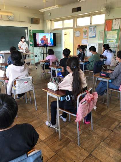 いつもと違う先生の読み聞かせは初め緊張感がありましたが、選んでくれた本の世界に吸い込まれていきました。4年生には教育実習生の小野琴春さんが入りました。また、関西出身の教員による、関西弁の絵本の、完璧なイントネーションが素晴らしかったです。