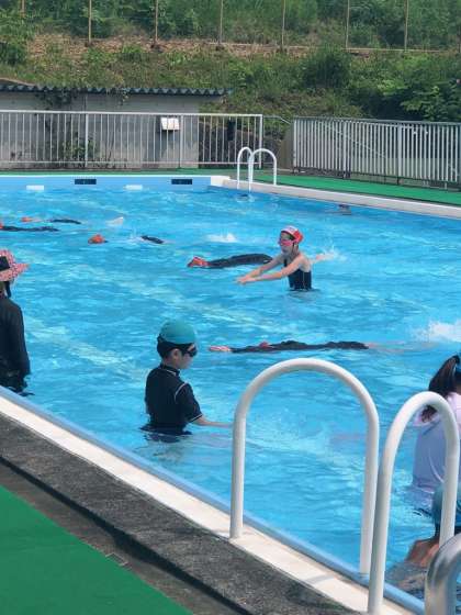 午後は5・6年生の水泳です。上手にバタ足をするにはどうしたら良いか、前時の学習を振り返りをした後、バディとバタ足リレーをしました。基礎をしっかり学んでいます。