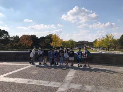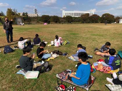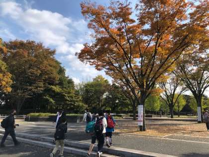 お昼を昭和記念公園のみどりの文化ゾーンで食べました。紅葉も進み始めていて、とてもきれいでした。ポカポカ陽気の中、芝生の上でみんなで食べたお弁当は最高でした。