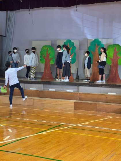 魔法をすてたマジョリンのグループ練習の様子です。 マスク着用でも届く声、顔が隠れても伝わる大きな表現に苦心しながら頑張っています。