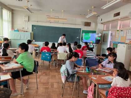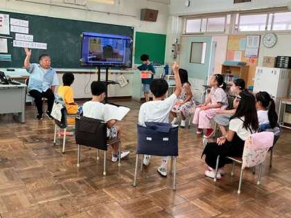 4年 一人ひとりが用意した「写真から考える」をテーマに、順番に発表したり感想や質問をしたりする、伝え合いの授業でした。