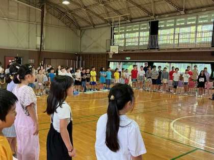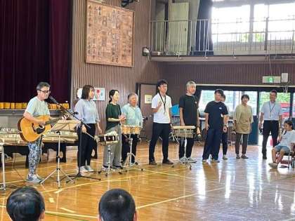 最後にみんなで「カリブ夢の旅」を歌い、サプライズで先生たちの演奏がありました。